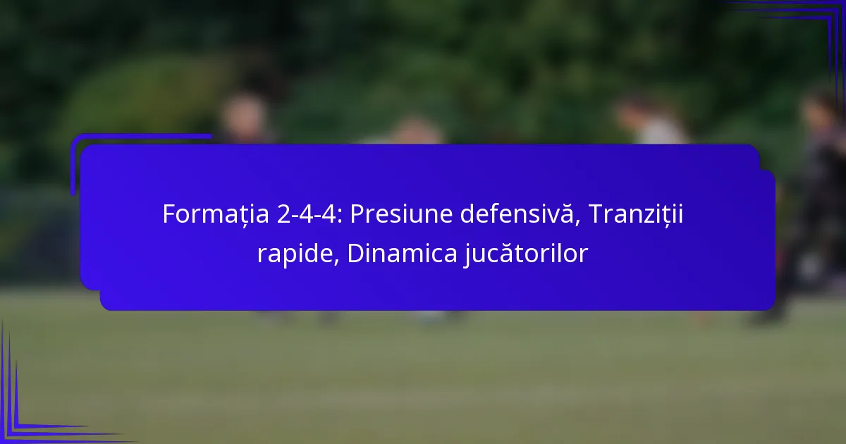 Menținerea formei defensive în formația 2-4-4 se bazează pe poziționare disciplinată și comunicare eficientă între jucători. Fiecare jucător ar trebui să știe zonele și responsabilitățile specifice, asigurându-se că nu lasă goluri pentru adversari să profite. Exercițiile regulate axate pe poziționare pot ajuta la consolidarea acestor concepte.